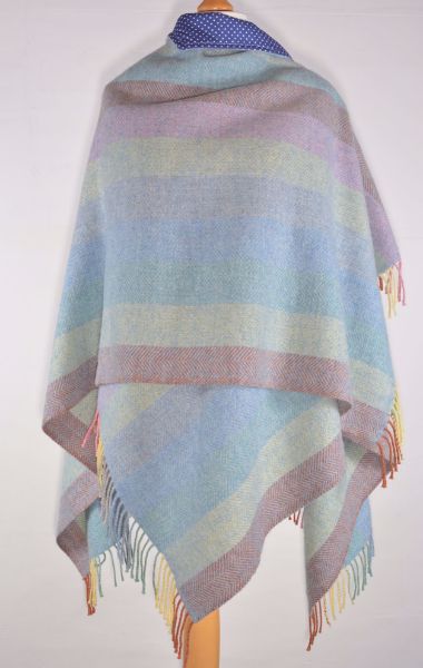 Anharad Glas is from the Dyfed range. Commissioned by us the fabric has been woven at Curlew Mills in Ceredigion in 100% pure new wool. It has a multi-coloured warp which is then woven with a blue weft. With a cotton lining and a co-ordinating bag included in your purchase.